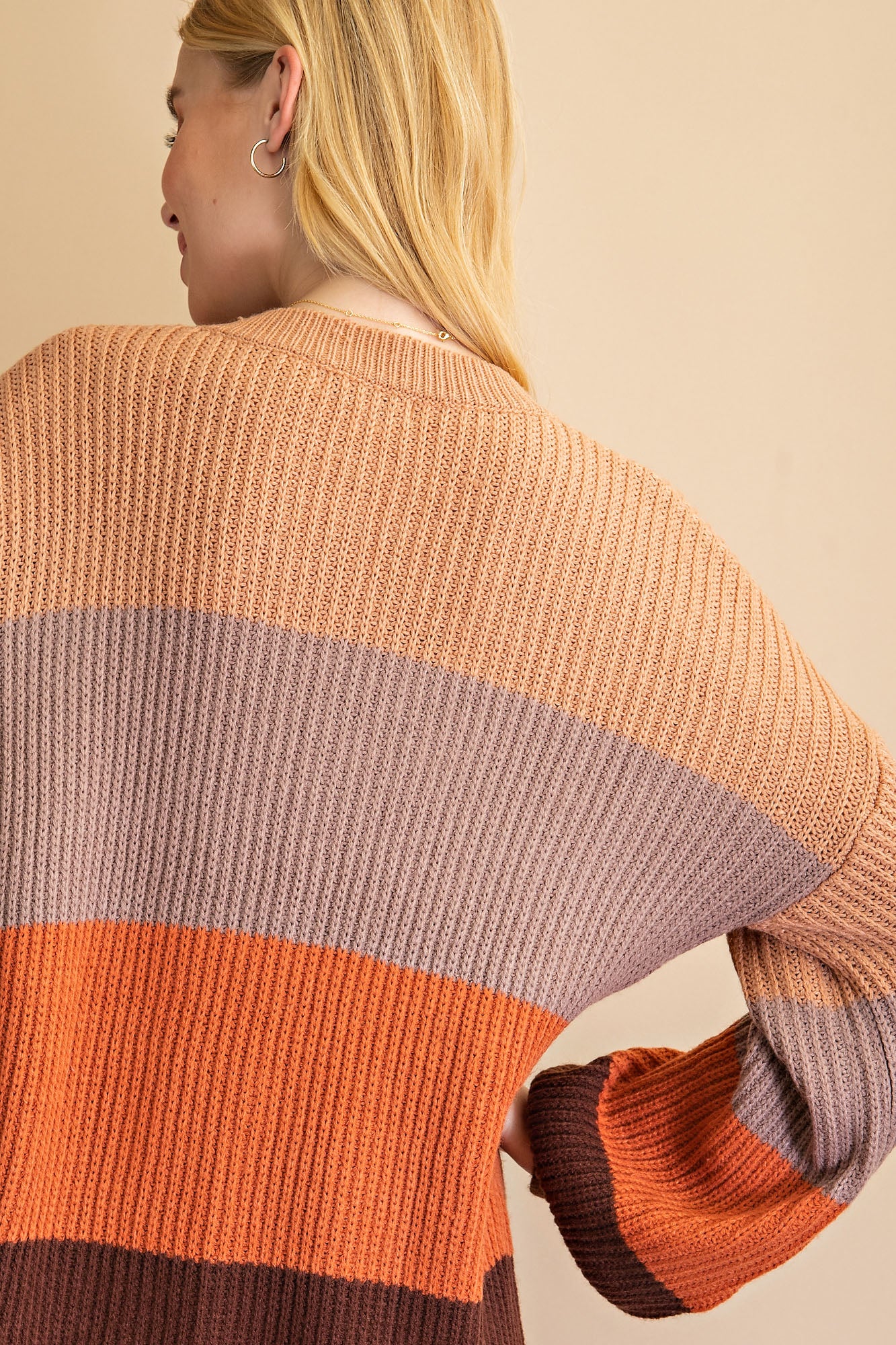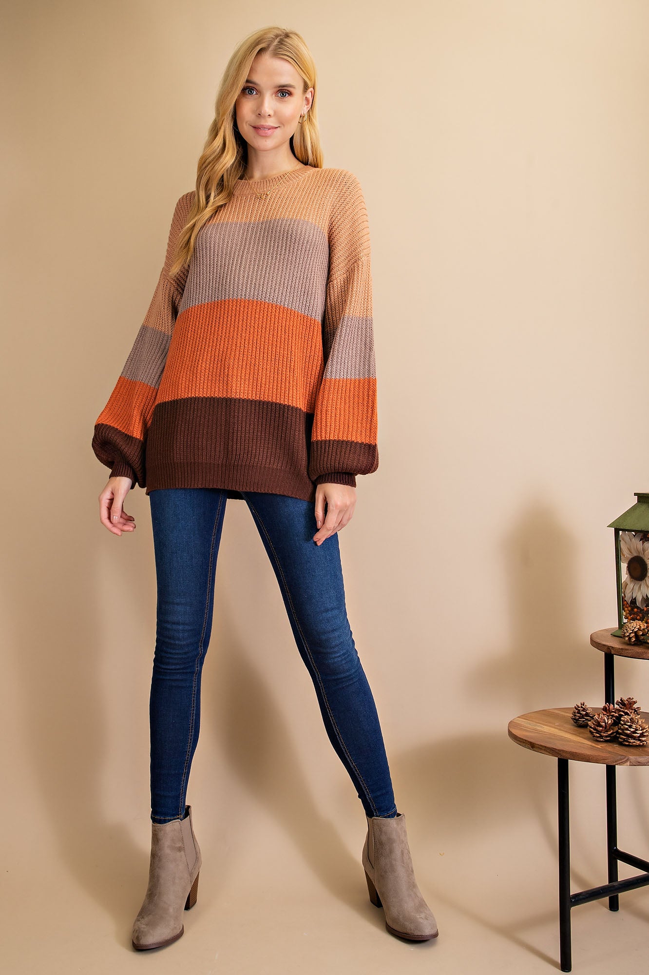Stay cozy and warm in our loose fit Brooklyn knit sweater top. Pair it with the Caramel liquid pants.