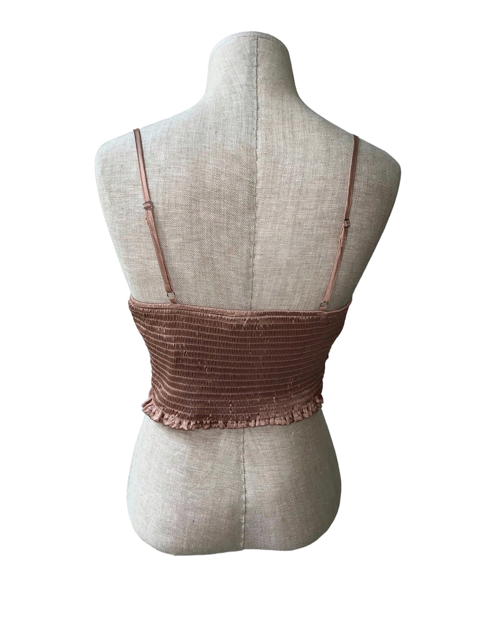 This crop top is perfect for a night out or a day look. The champagne color adds a touch of elegance and sophistication to any outfit. Whether you're dressing up for a night out or keeping it casual for a day out, this top is sure to turn heads.