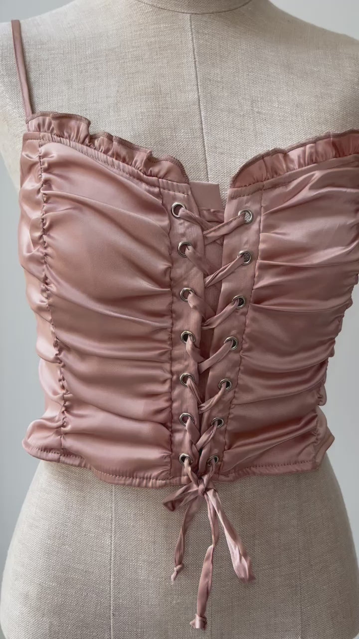 Introducing our stunning champagne crop top, the perfect addition to your wardrobe. This top features adjustable strands in the front, allowing for a customized fit and added style. The smocked back ensures a comfortable and flattering fit, while the adjustable straps provide versatility in styling and allow for a customized fit.