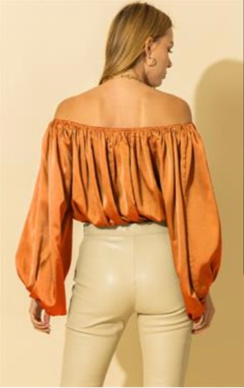 Introducing the Suzi top, a stylish and comfortable addition to your wardrobe. This top is only available in the tan color, which is perfect for those who love earthy tones. The off the shoulder design of the top adds a touch of elegance to your outfit, while the balloon sleeves add a chic touch to the overall look.